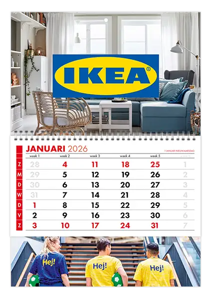 Ja, je kunt je eigen foto’s en logo’s gebruiken voor je kalenders. Ook andere gegevens of teksten kun je toevoegen om de kalender volledig te personaliseren. Wij bieden gepersonaliseerde kalenders aan, zodat jouw bedrijf het hele jaar zichtbaar blijft bij relaties, zowel op kantoor als thuis.