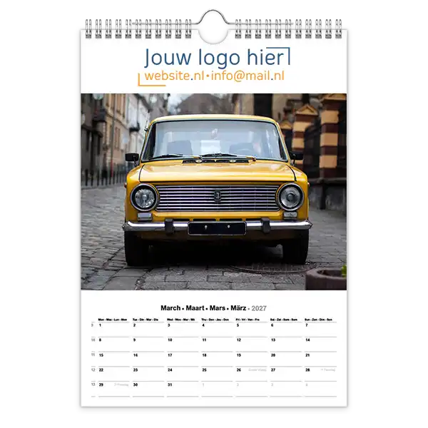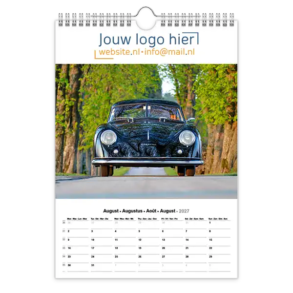 Een autokalender met jouw bedrijfslogo of een persoonlijke boodschap is ideaal om het hele jaar zichtbaar te zijn bij klanten en relaties. Bij Kalendersbestellen.nl kun je je fotokalender laten bedrukken met jouw logo, slogan of een boodschap die past bij jouw merk.