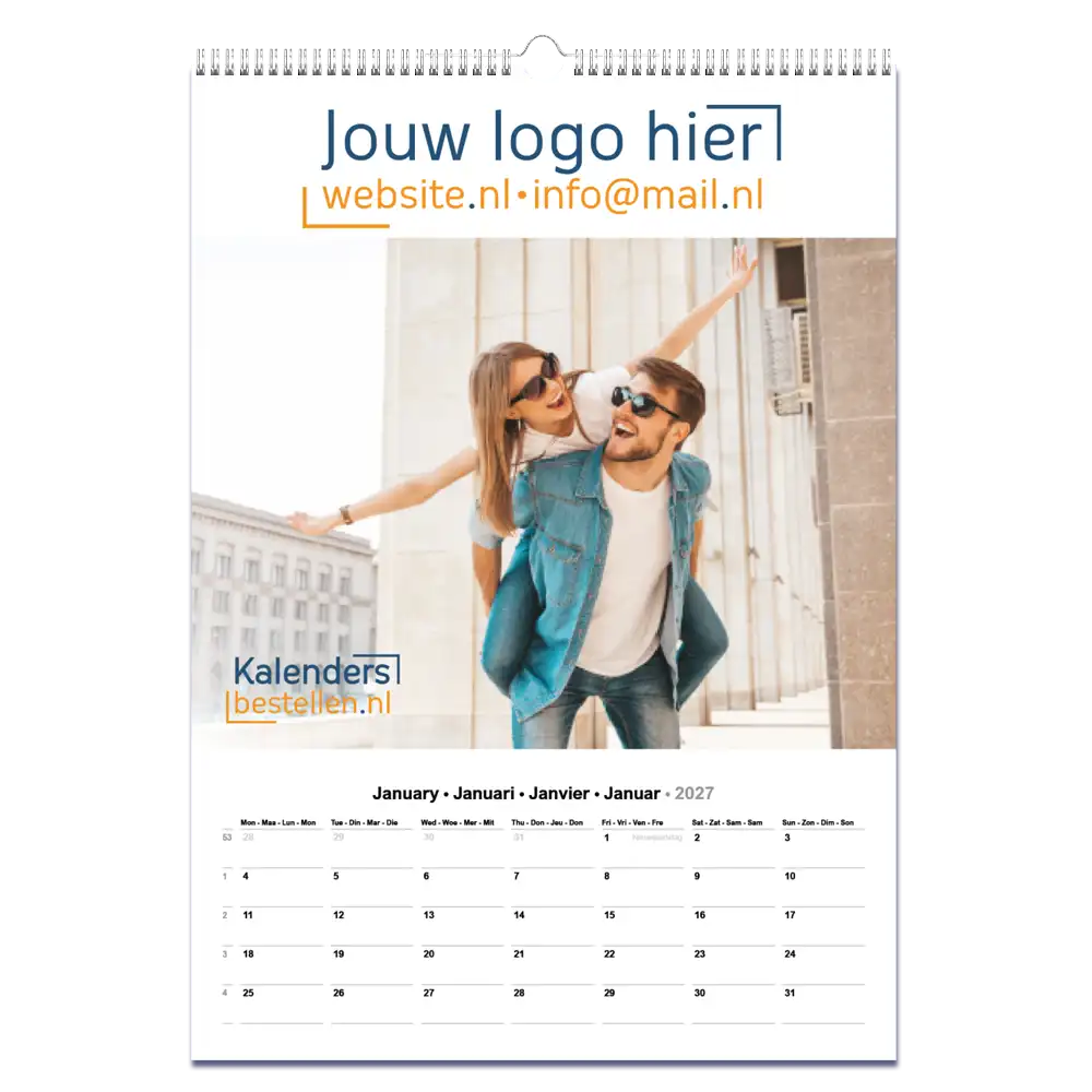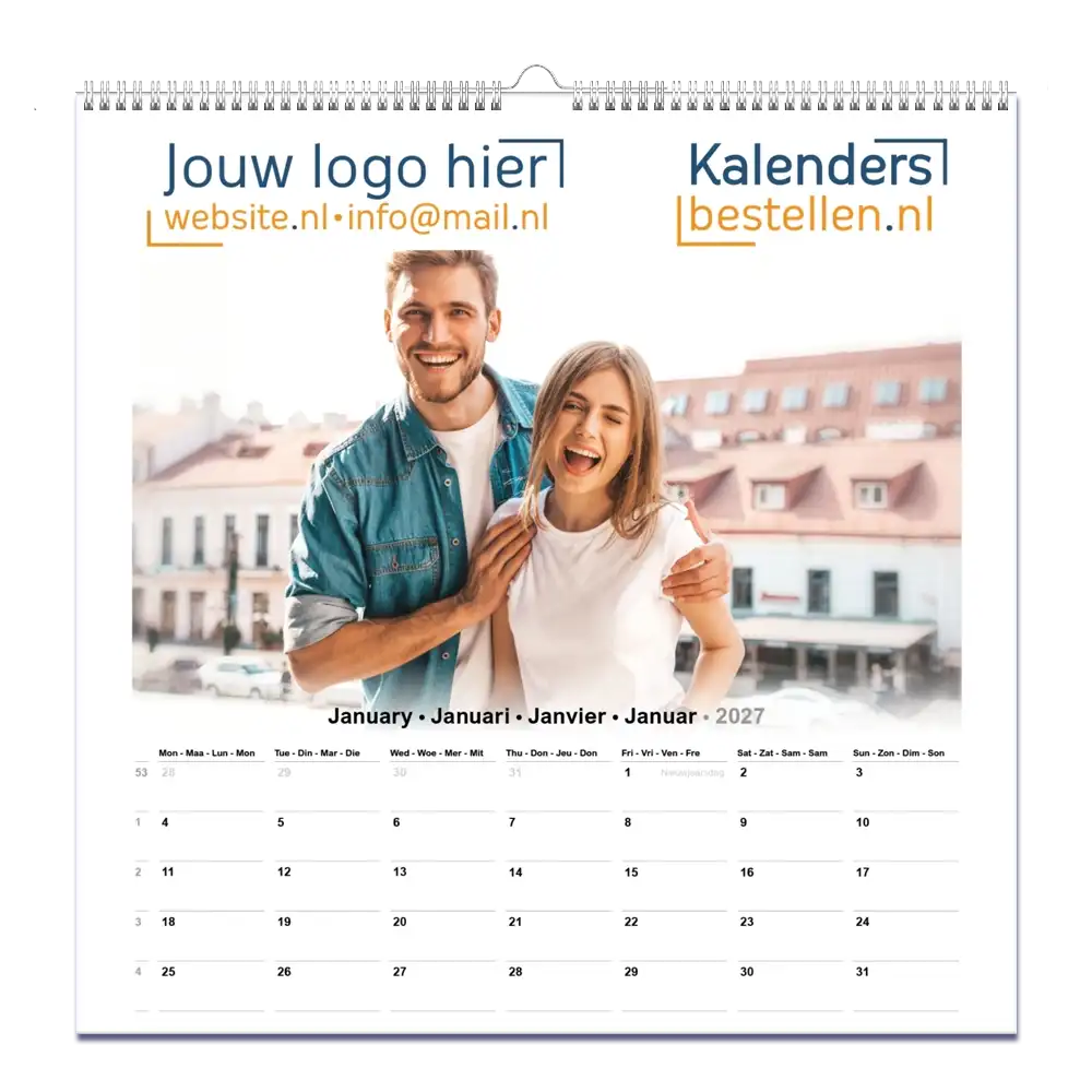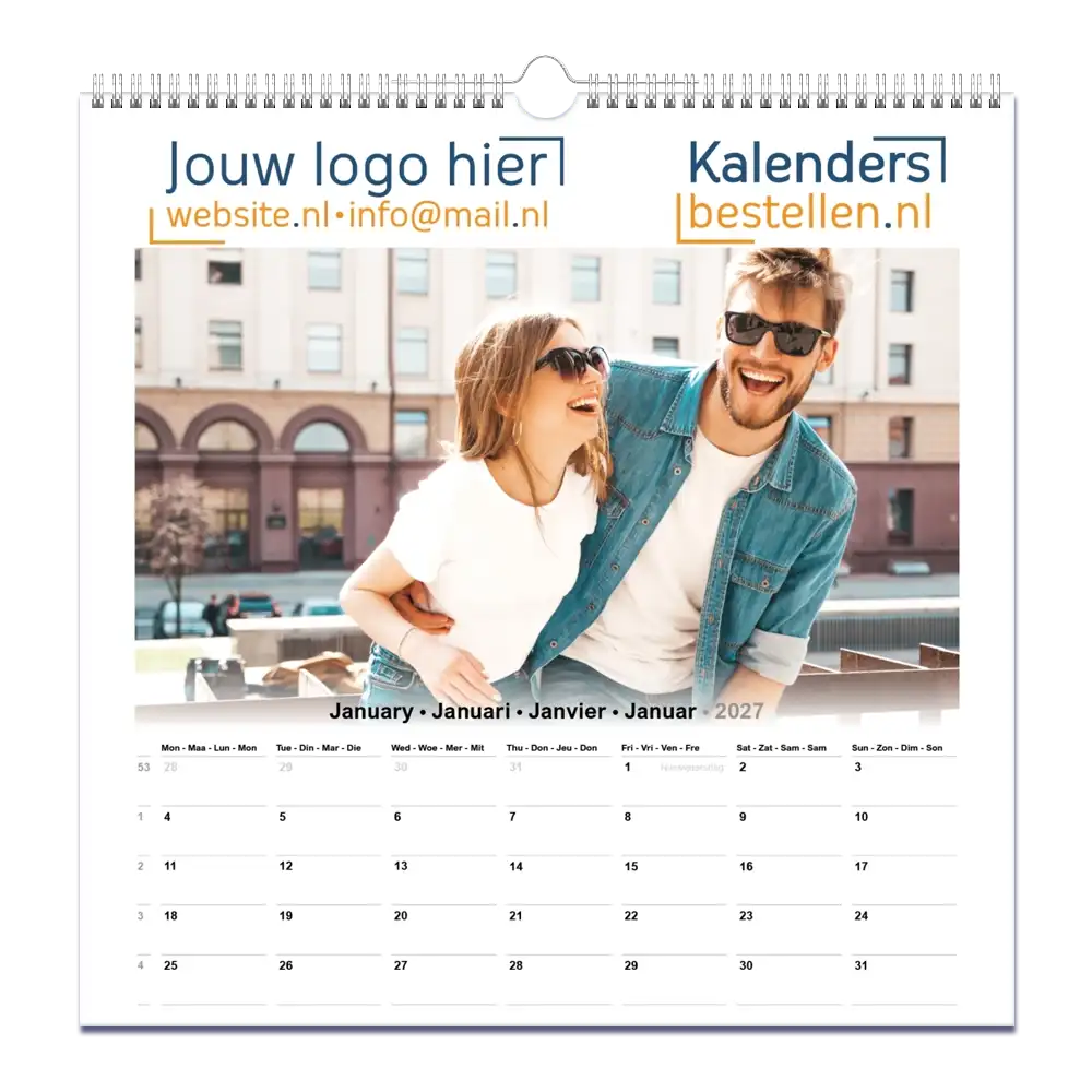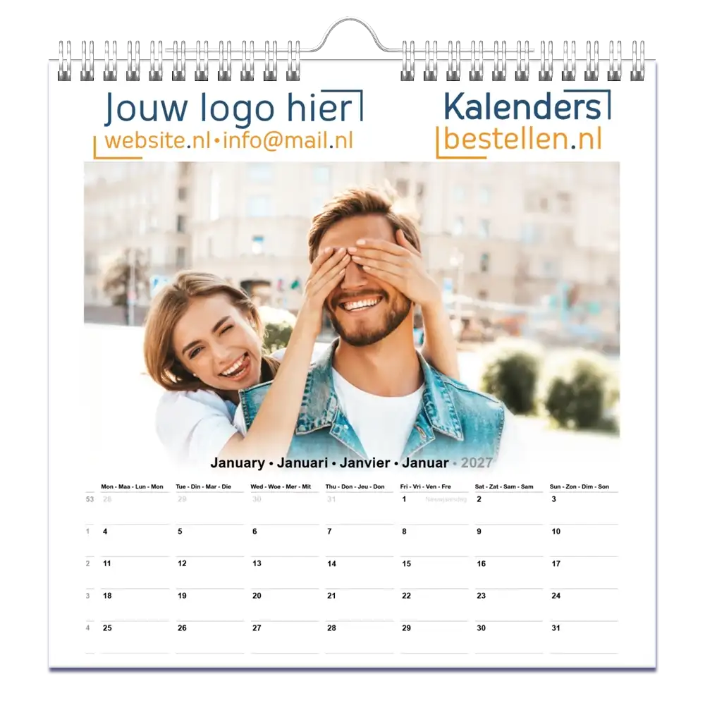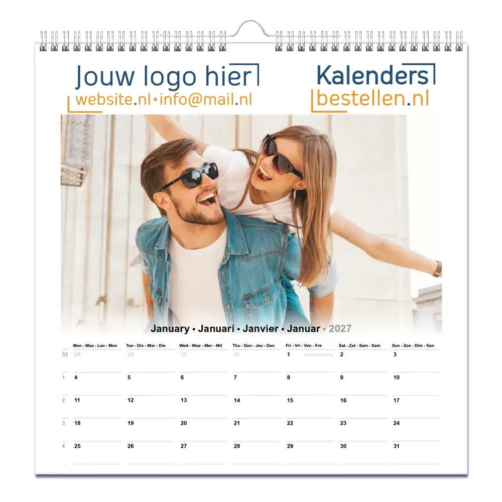 Een kalender met jouw bedrijfslogo of een persoonlijke boodschap is ideaal om het hele jaar zichtbaar te zijn bij klanten en relaties. Bij Kalendersbestellen.nl kun je je fotokalender laten bedrukken met jouw logo, slogan of een boodschap die past bij jouw merk.