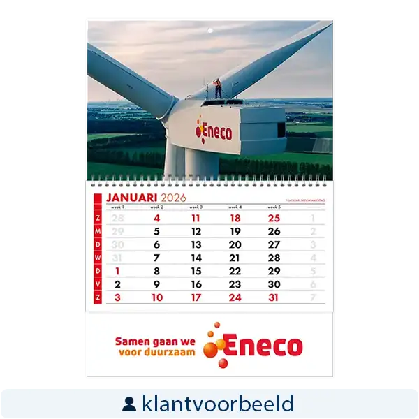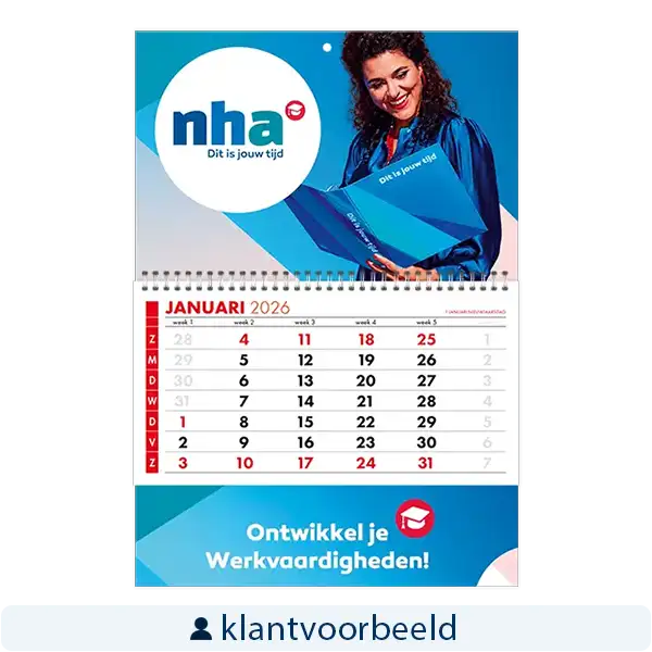 Ja, je kunt je eigen foto’s en logo’s gebruiken voor je kalenders. Ook andere gegevens of teksten kun je toevoegen om de kalender volledig te personaliseren. Wij bieden gepersonaliseerde kalenders aan, zodat jouw bedrijf het hele jaar zichtbaar blijft bij relaties, zowel op kantoor als thuis.